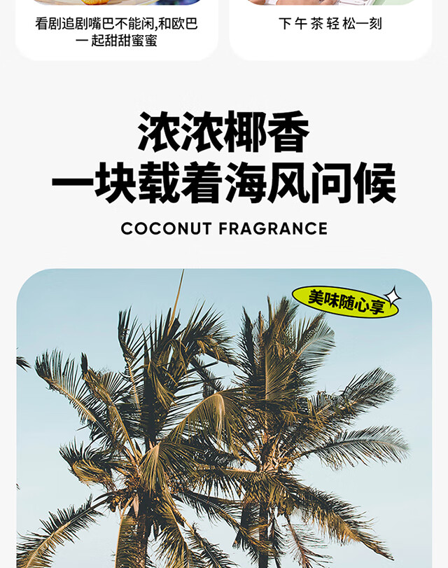 1、健康配方:斯里蘭卡進(jìn)口椰蓉,添加量大于等于34%,新西蘭進(jìn)口安佳黃油,海藻糖代替白砂糖,優(yōu)質(zhì)原料,食用放心又健康