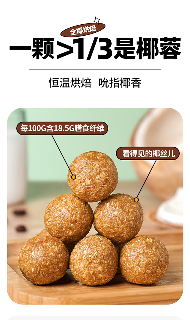 2、無麩質(zhì)全椰烘焙,小體積大能量,高膳食纖維的椰蓉制作,抗餓飽腹