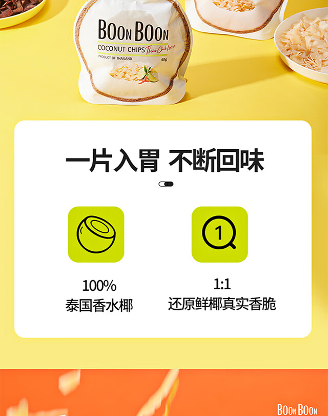 2、只選 8-9個月新鮮嫩椰,口感香脆無渣感(市面上椰子片普遍用12個月的老椰子,成本更低但嚼下來渣感強)