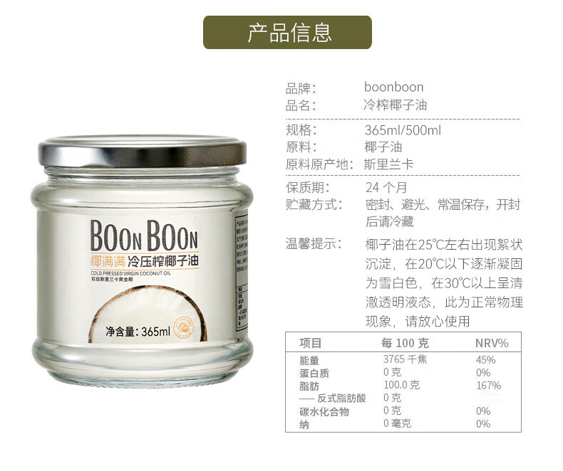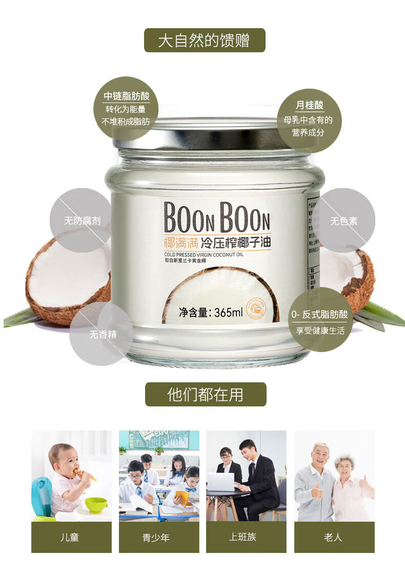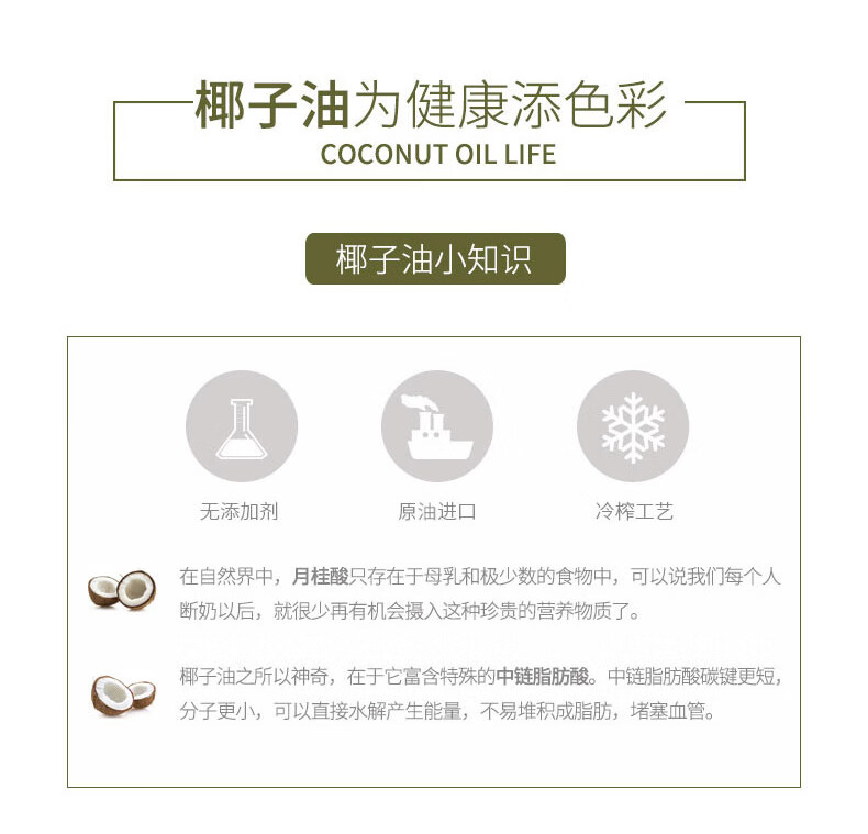 1、健康配方:純椰子油,0添加劑