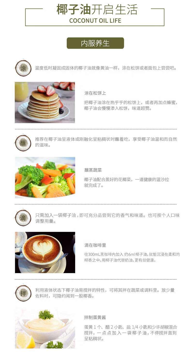 5、食護兩用:椰香烘焙,防彈咖啡,護發(fā),油拔漱口等