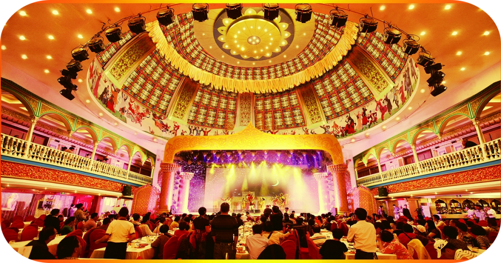 二道橋大劇院是西北地區迄今為止最大的穹頂伊斯蘭風情美食歌舞大劇院,整體經營面積8000平方米,標準餐位1000個,擁有新疆最大的麥西來甫餐飲演藝廣場,融合民族歌舞與民族美食之精髓,采用皇家劇院建造格局,宮殿式裝修風格,其正宗的新疆美食與純正的中西亞民俗風情歌舞相結合,成為美食與歌舞的天堂、西部最具特色的餐飲之都同,是游客盡享中亞特色佳肴,飽覽西域民族歌舞的天堂。