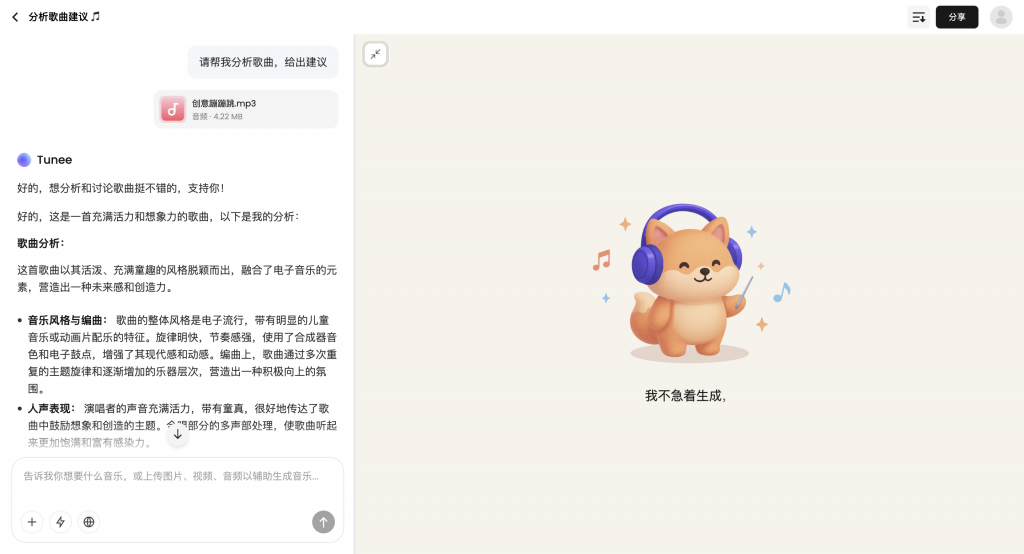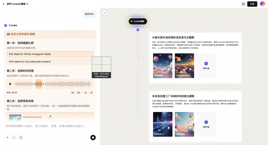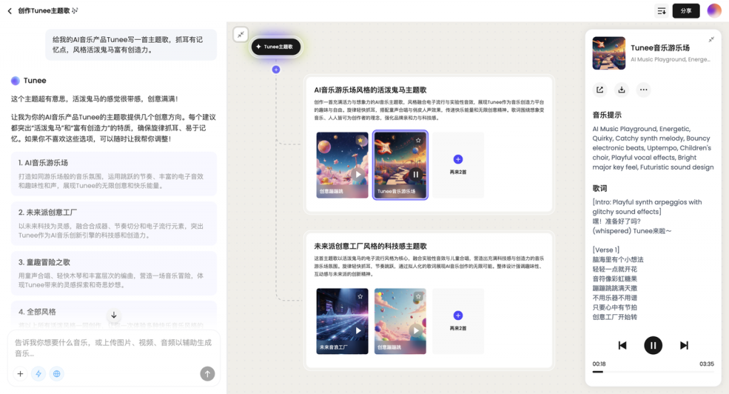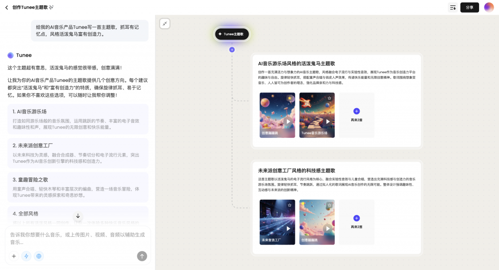 Tunee是國內首個對話式音樂創作Agent,由“國產AI音樂三巨頭”之一的天譜樂團隊孵化?
