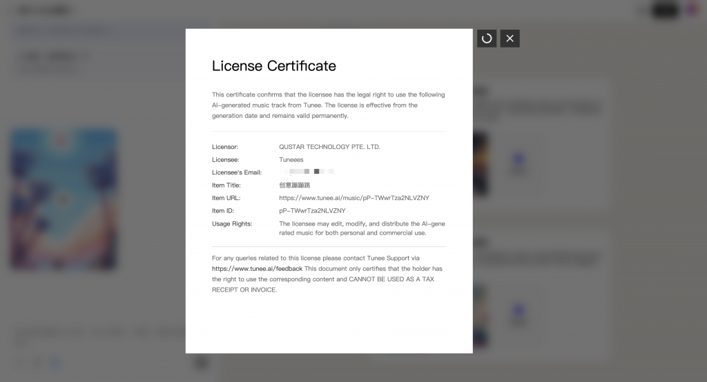 付費訂閱,獲得Tunee生成歌曲版權,并享有完全商業權利(變現、廣告、游戲等)