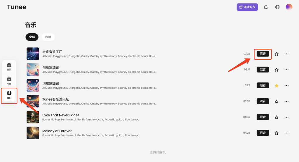 生成音樂曲庫一鍵混音,輕松快速生成全新編曲版本