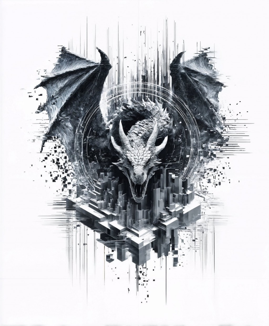在城市中噴吐光芒的西方龍,充滿了科幻與未來感。隨著時代發展,西方龍的形象也在不斷演變,融入了現代科技與都市元素,成為科幻、奇幻作品中展現未來世界想象的符號,體現了西方文化對科技進步與未來可能性的探索與暢想。