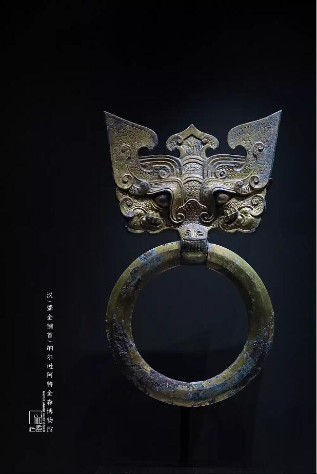 鋪首是含有驅邪意義的傳統建筑門飾。門扉上的環形飾物,大多冶獸首銜環之狀。以金為之,稱金鋪;以銀為之稱銀鋪;以銅為之,稱銅鋪。其形制,有冶蠡狀者,有冶獸吻者,有冶贍狀者,蓋取其善守濟。又有冶龜蛇狀及虎形者,以用其鎮兇辟邪。而獸首銜環之冶,商周銅飾上早已有之。它是獸面紋樣的一種,有多種造型,嘴下銜一環,用于鑲嵌在門上的裝飾,一般多以金屬制作,作虎、螭、龜、蛇等形。漢代寺廟多裝飾鋪首,以作驅妖避邪。在民間門扉上應用亦很廣,為表示避禍求福,祈求神靈像獸類敢于搏斗那樣勇敢地保護自己家庭的人財安全。
