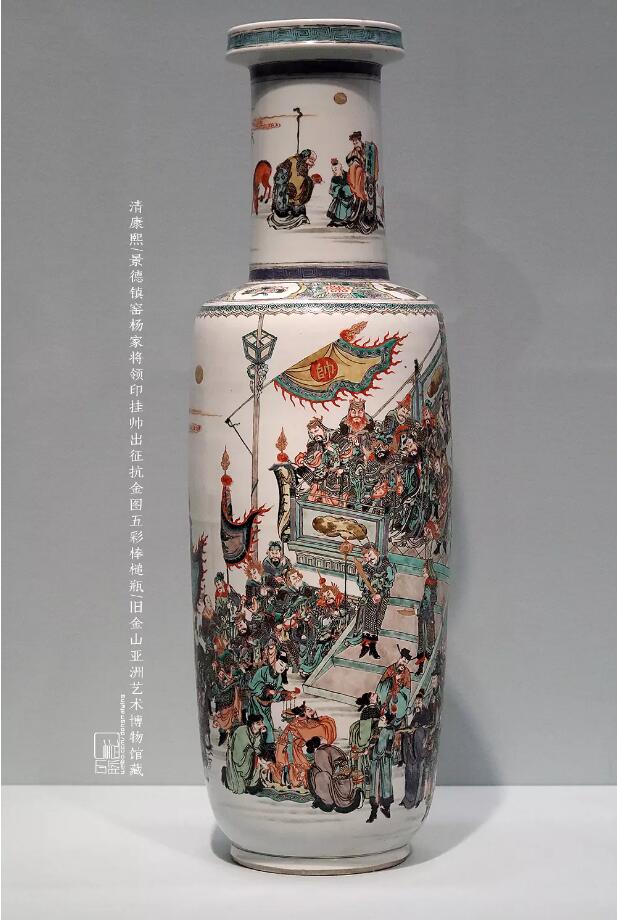 《景德鎮窯楊家將領印掛帥出征抗金圖五彩棒槌瓶》