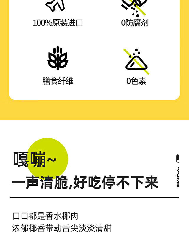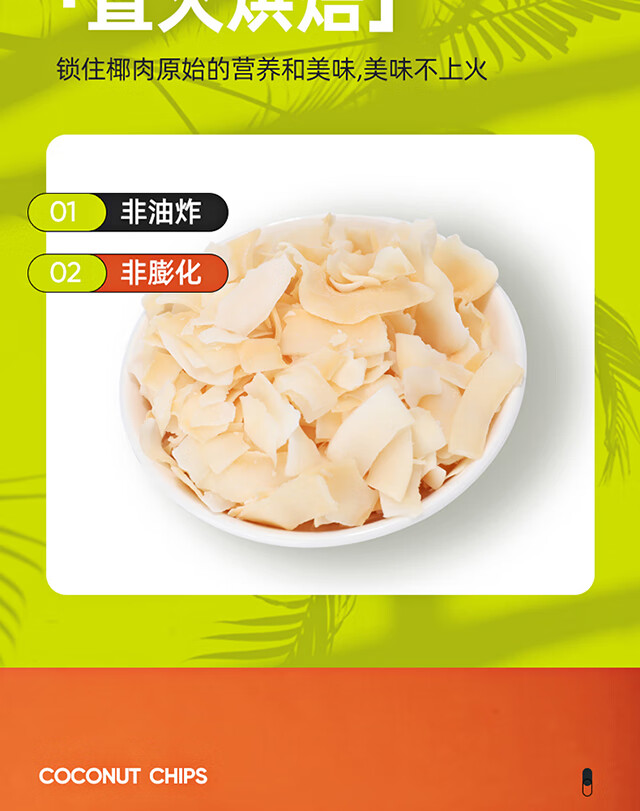 2、只選 8-9個月新鮮嫩椰,口感香脆無渣感(市面上椰子片普遍用12個月的老椰子,成本更低但嚼下來渣感強)